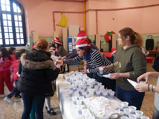Las familias del costa despedimos el año con una gran chocolatada organizada por el AMPA. Lo prepararon y repartieron un grupo de padres y madres voluntarias después de la última actuación del Festival de Navidad.
