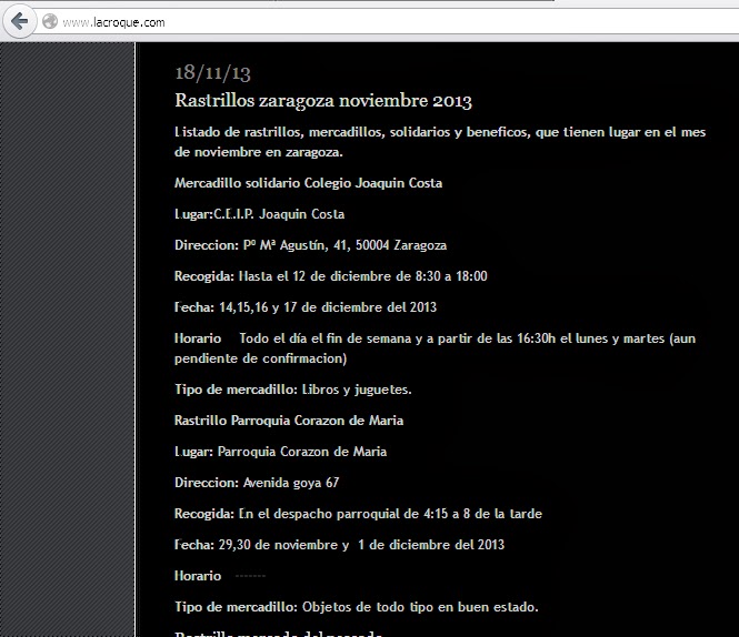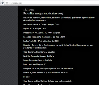 24 noviembre, 2013Blog del AMPAAsociación Familias La web http://www.lacroque.com/2013/11/rastrillo-colegio-joaquin-costa.html que recopila mercadillos, anuncia desde el día 18 de noviembre la recogida de juguetes y libros de nuestro mercadillo.
