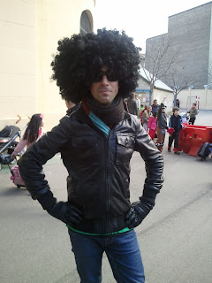 Abajo, 6 fotos realizadas por Juan López presidente del APA en el que se ve la distribución de longaniza,los disfraces de profesores y alumnos, y la animación del patio incluso a pesar del frío.