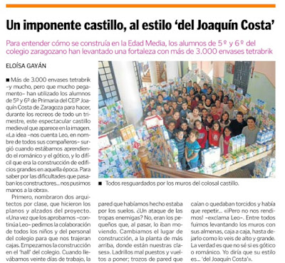 Los alumnos de 5º y 6º han construido en la segunda planta del Costa un gran castillo medieval. El edificio y sus constructores aparecen este miércoles, 15 de diciembre, en las páginas del Heraldo Escolar.
