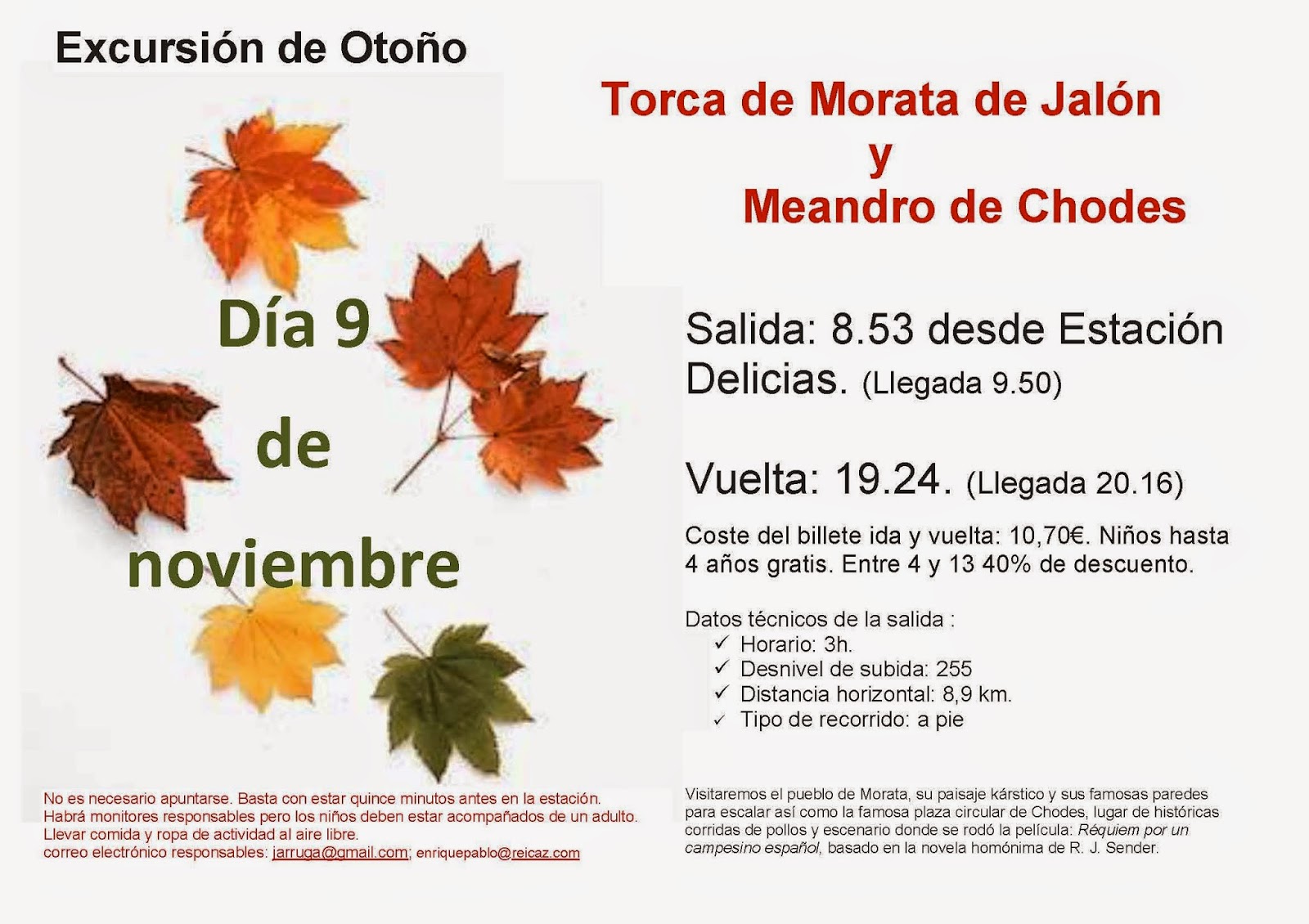El domingo 9 de noviembre tenemos la primera excursión del curso. Será a la torca de Morata de Jalón y al meandro de Chodes, en la provincia de Zaragoza.