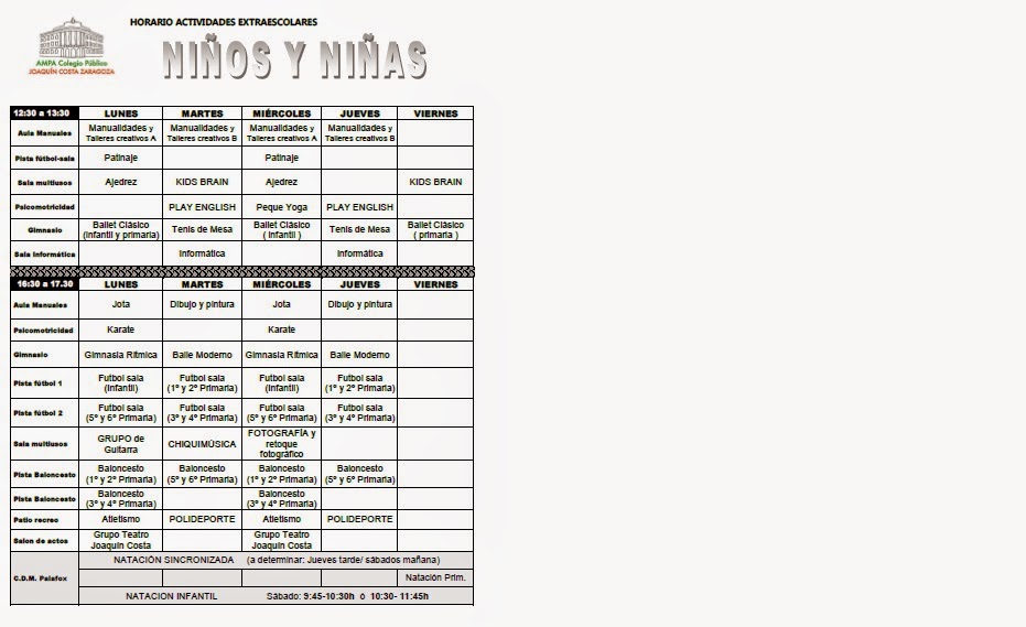 24 septiembre, 2014Blog del AMPAAsociación Familias Las listas definitivas de las actividades extraescolares se publicarán el viernes, 26 de septiembre. Comenzarán en octubre.