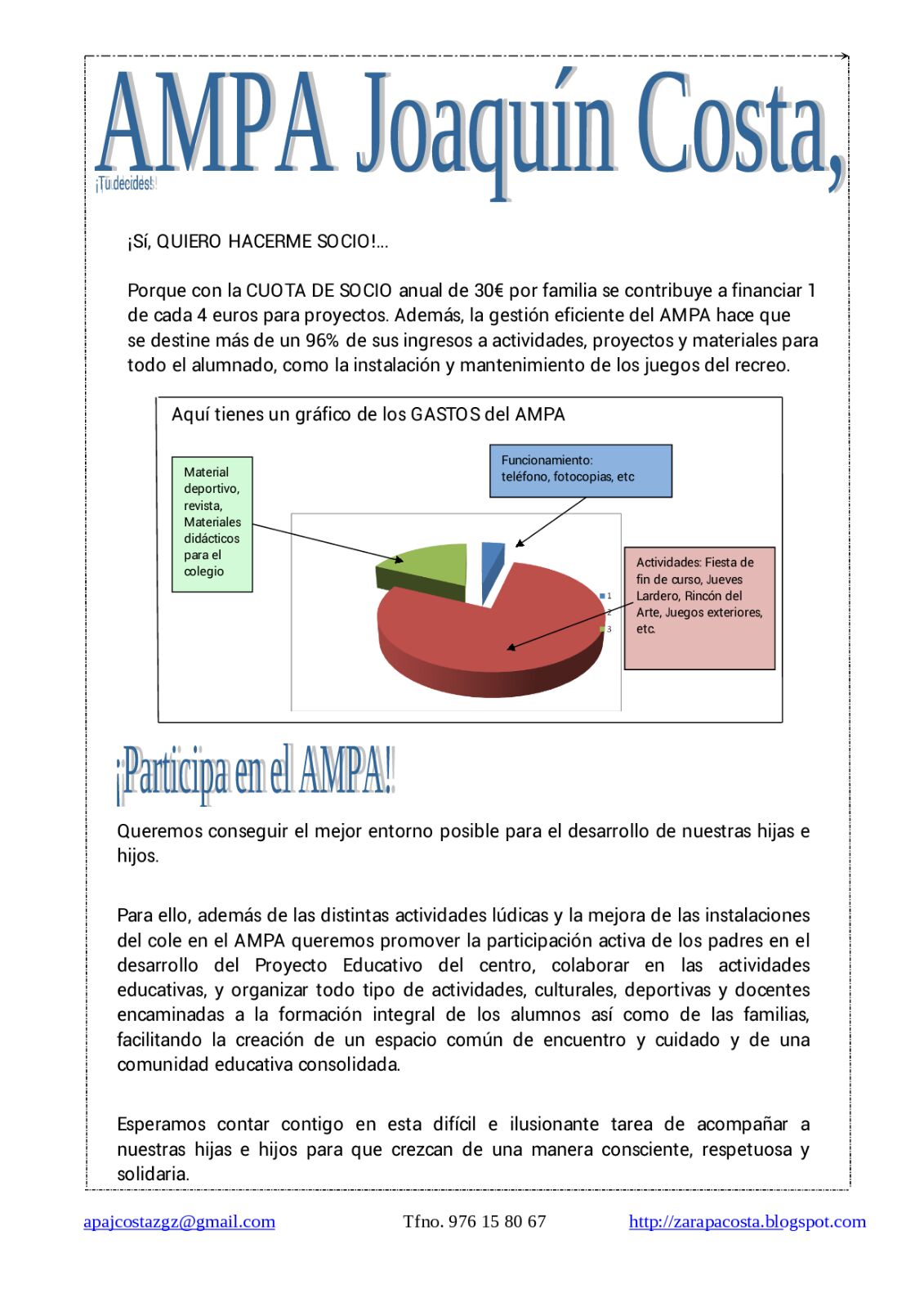 La Asociación de Madres y Padres Joaquín Costa os da la bienvenida al nuevo curso y os anima a formar parte de la misma para, entre todos, seguir mejorando nuestro cole.