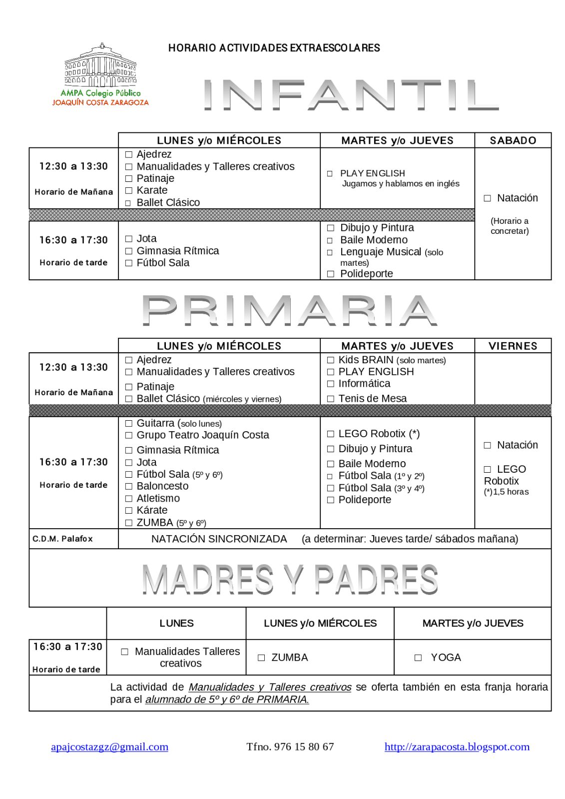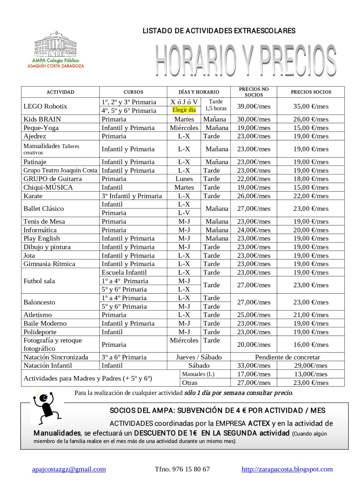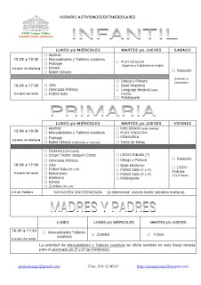 Os presentamos también la amplia oferta de actividades extraescolares en las que podéis inscribiros entrando en http://www.actexaragon.com/ o a través de la ficha de inscripción adjunta.