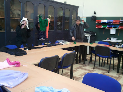 En la foto podemos ver los disfraces cedidos, y dispuestos en el aula museo, a disposición de las tutoras.
