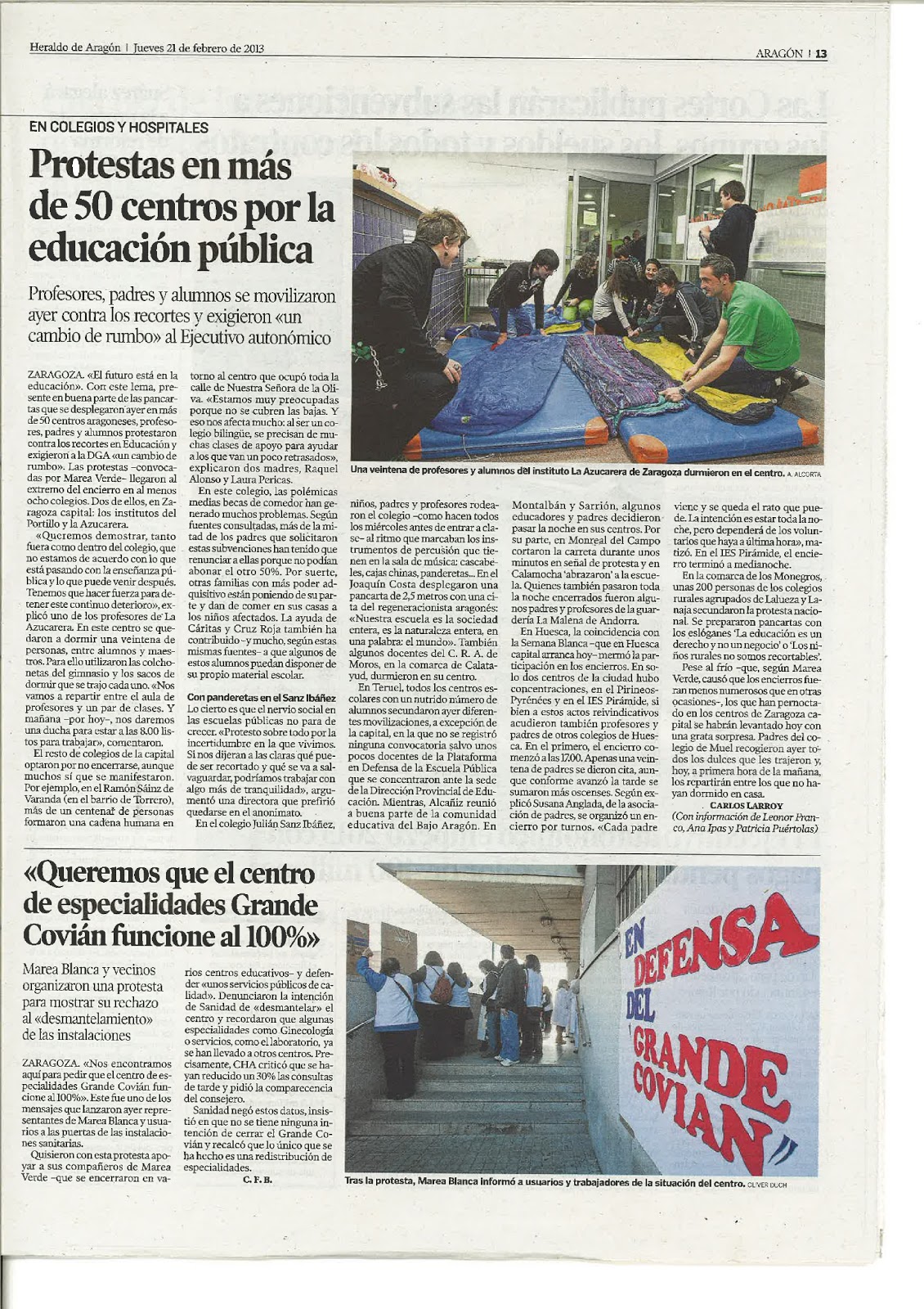 En Aragón TV a la carta en el telediario NoTICIAS 2 del 20/02/2013 el minuto 23 sale la presentación de la pancarta.